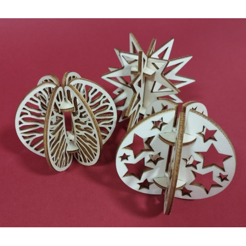 Leseni okraski za jelko 3D.
